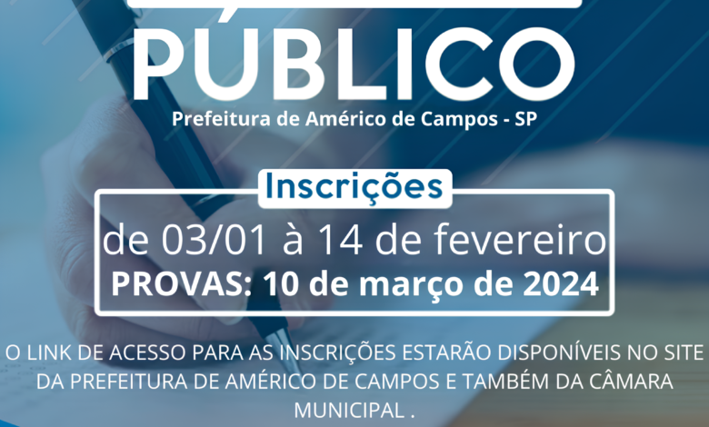 Leia mais »Inscrições Abertas para Concurso Público em Américo de Campos – SP. A prova objetiva para todos os cargos está marcada…