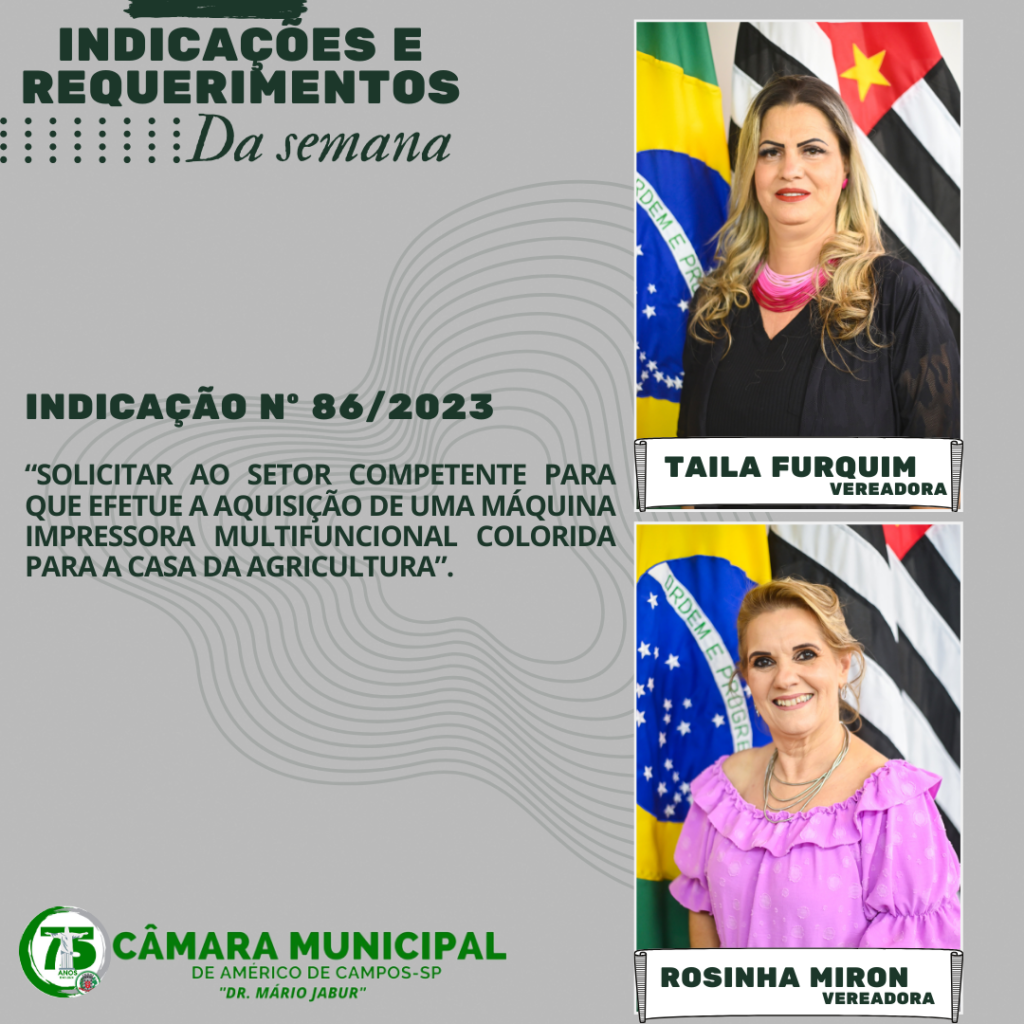 CONFIRA AS INDICAÇÕES E REQUERIMENTOS DA SEMANA