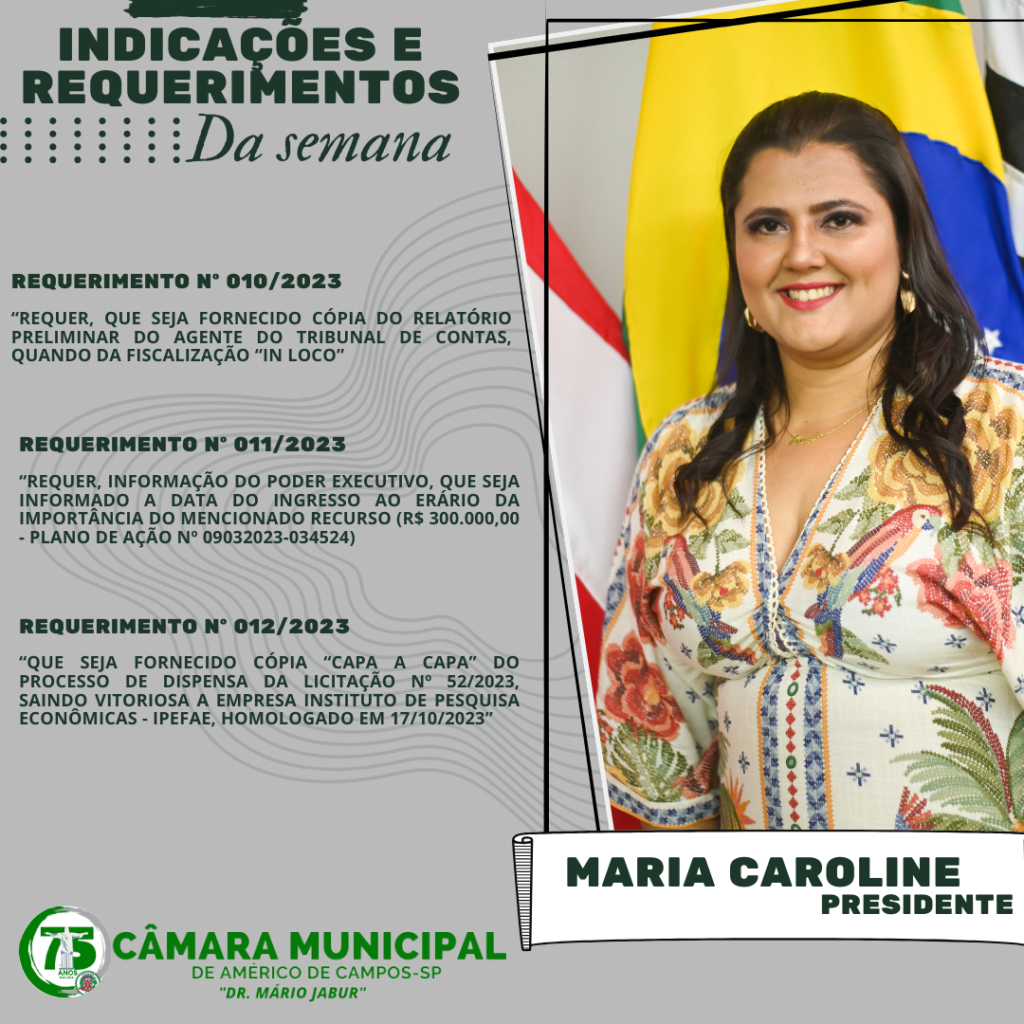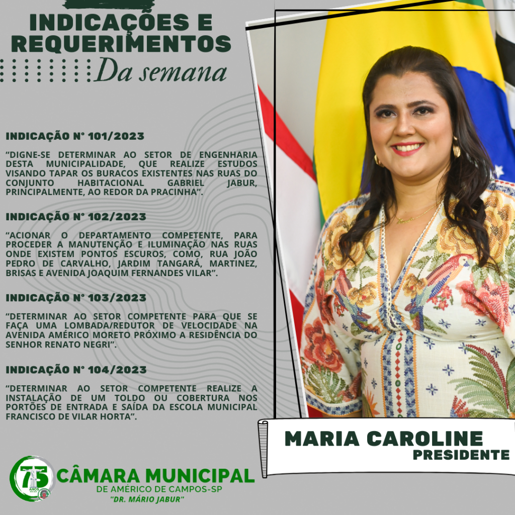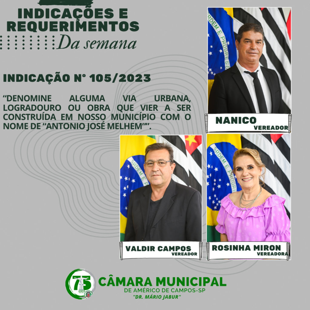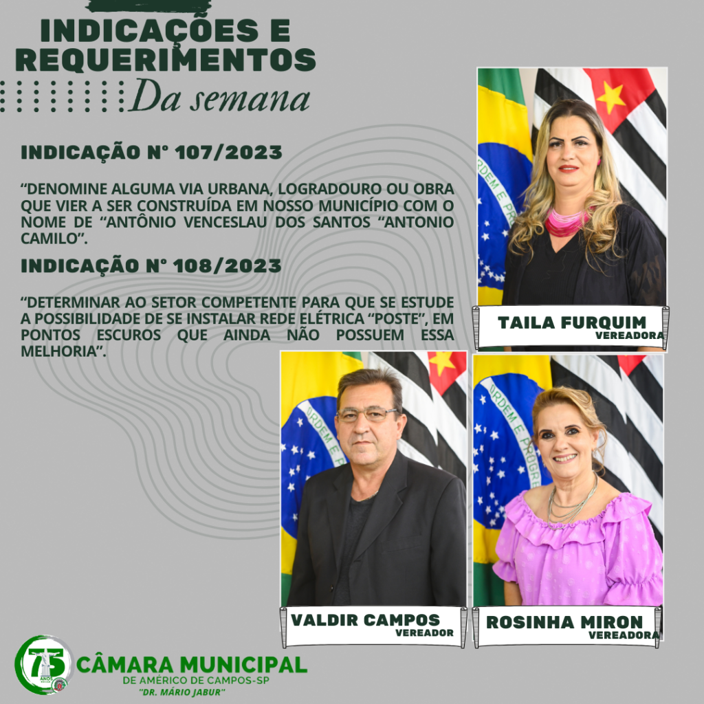 CONFIRA AS INDICAÇÕES E REQUERIMENTOS DA SEMANA
